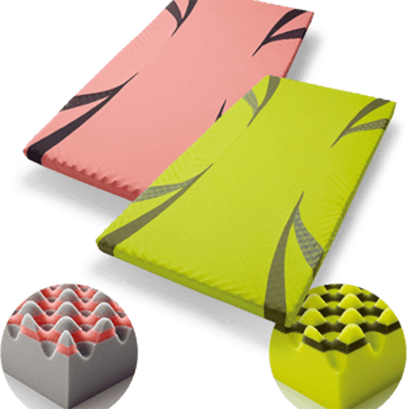 三層構造の中間層のウレタンの硬さを変えることにより、点での支えが強い押圧的感触の「ハード」と、しっかり支えながらも柔感触の「ベーシック」の2タイプをご用意